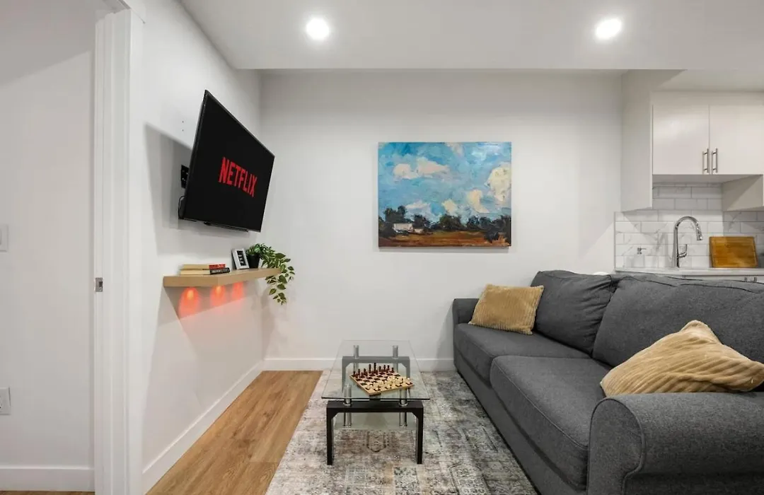 Köksfaciliteterna i villan Modern 2Br Private Suite Near Calgary Airport inkluderar vattenkokare, te-/kaffebryggare och köksredskap, som finns i matplats. Calgary internationella flygplats kan nås på 15 minuter med bil.